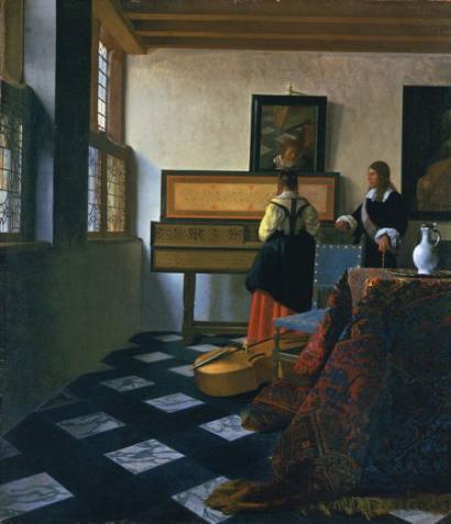 Johannes Vermeer (1632-1675), La Leçon de musique, vers 1660-1662, huile sur toile, 73 x 65 cm. Royal Collection Trust / © Her Majesty Queen Elizabeth II 2016.